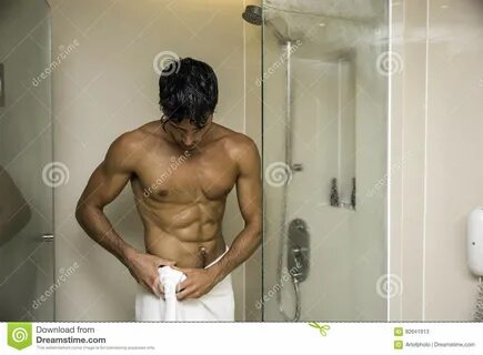 Attractive Young Bare Muscular Man after Taking Shower Stock Image - Image of mu